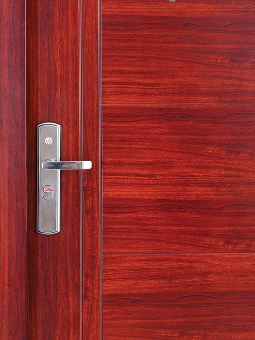 The Hawaii Steel Door HD 20 is a durable and aesthetically designed steel door, ideally suited for both residential and commercial purposes. The door features a wooden laminate finish that mimics the look of natural wood, providing a warm, classic appeal while ensuring the strength and security of a steel door. It is equipped with a high-quality lock mechanism that enhances security. The door also includes a peephole for added convenience and safety, allowing occupants to monitor visitors before opening the door