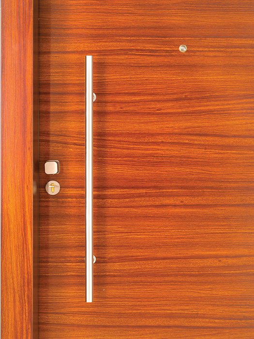 Crafted with a rich wood-finish steel surface, the HD 50 1200 combines the warmth of natural wood aesthetics with the durability of heavy-duty steel. Its sleek vertical bar handle adds a contemporary touch while ensuring comfort and ease of use.Equipped with a strong frame, advanced locking system, and high resistance to weather and wear, this door ensures maximum protection without compromising style.