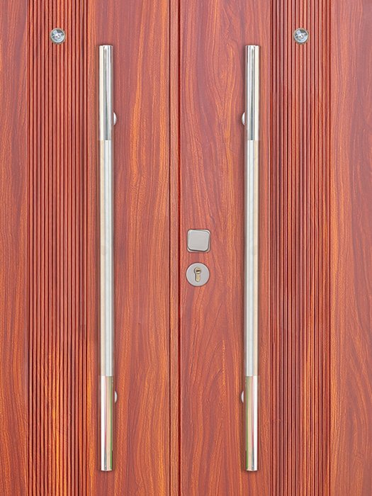 The Hawaii Steel Door HD 75 is an elegant, sturdy door designed for both security and style. This model features a middle-open design, which provides a balanced aesthetic while ensuring optimal functionality. The door is equipped with sleek bar handles that add a modern touch. The rich wood-like finish gives it a warm, inviting appearance, making it suitable for both contemporary and traditional home designs. The robust structure of this door ensures excellent security and durability, while its advanced locking mechanisms provide peace of mind.