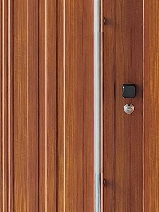 The Hawaii Steel Door HD 77 is a stylish and modern single door designed to enhance the security and aesthetics of your space. This door comes in a 1080 size, ensuring it fits standard openings while providing a strong, secure barrier. It features a sleek and contemporary wood-like finish, with a distinctive textured panel design that adds an element of sophistication.The door is equipped with a high-quality bar handle, which not only provides a functional grip but also complements the overall sleek design.