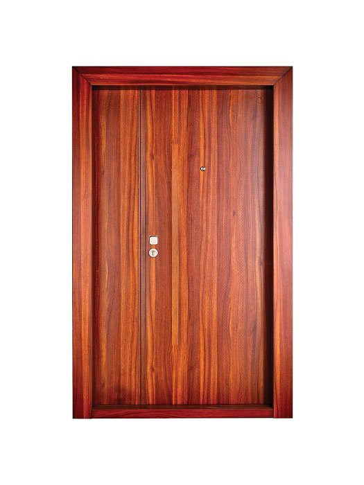 Hawaii Steel Door – Mother & Son 1200 Elegant wood-finish steel door in 1200 mm size with Mother & Son design, sleek bar handle, and advanced multi-locking system. Combines modern style, durability, and high security for premium entrances.