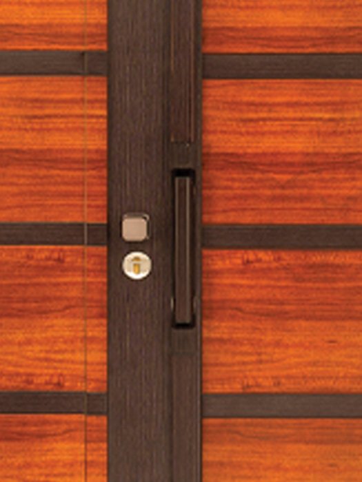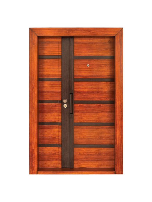 The HD97 Mother & Son model in 1200 size features a striking horizontal wood-grain design with a bold central panel, blending modern elegance with durability. Made from premium steel along with fridge handle, it comes with a reliable multi-locking system for enhanced security, making it an ideal choice for stylish and secure main entrances.