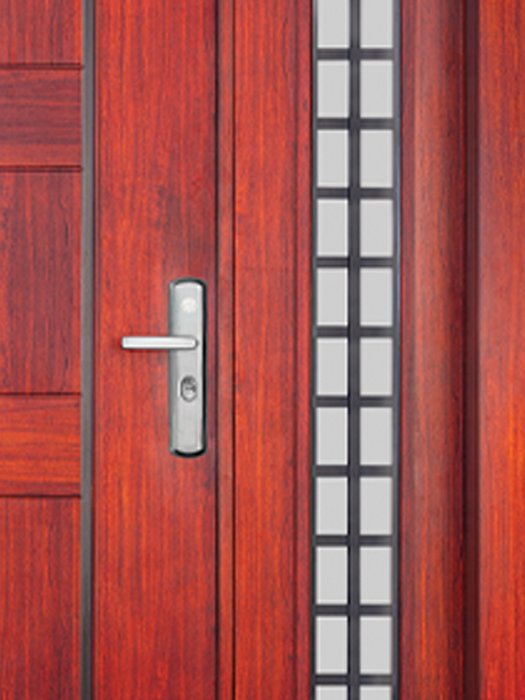 The HD 100 Door Cum Window model is a versatile steel entrance solution that combines the strength of a premium door with the convenience of integrated side windows for ventilation and light. With a total width of 1200 , this design is crafted from high-grade steel in a rich wood-finish texture, highlighted by a geometric panel pattern with black accents for a modern appeal.