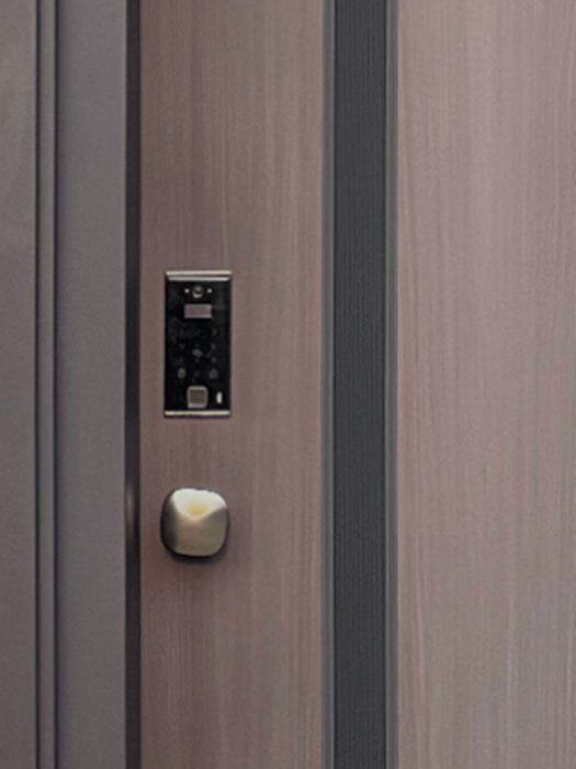 Crafted from high-quality steel and integrated with an inbuilt smart lock system, this door ensures reliable security and effortless access. Its elegant vertical design detail adds a touch of sophistication, making it a perfect choice for premium homes and commercial spaces.